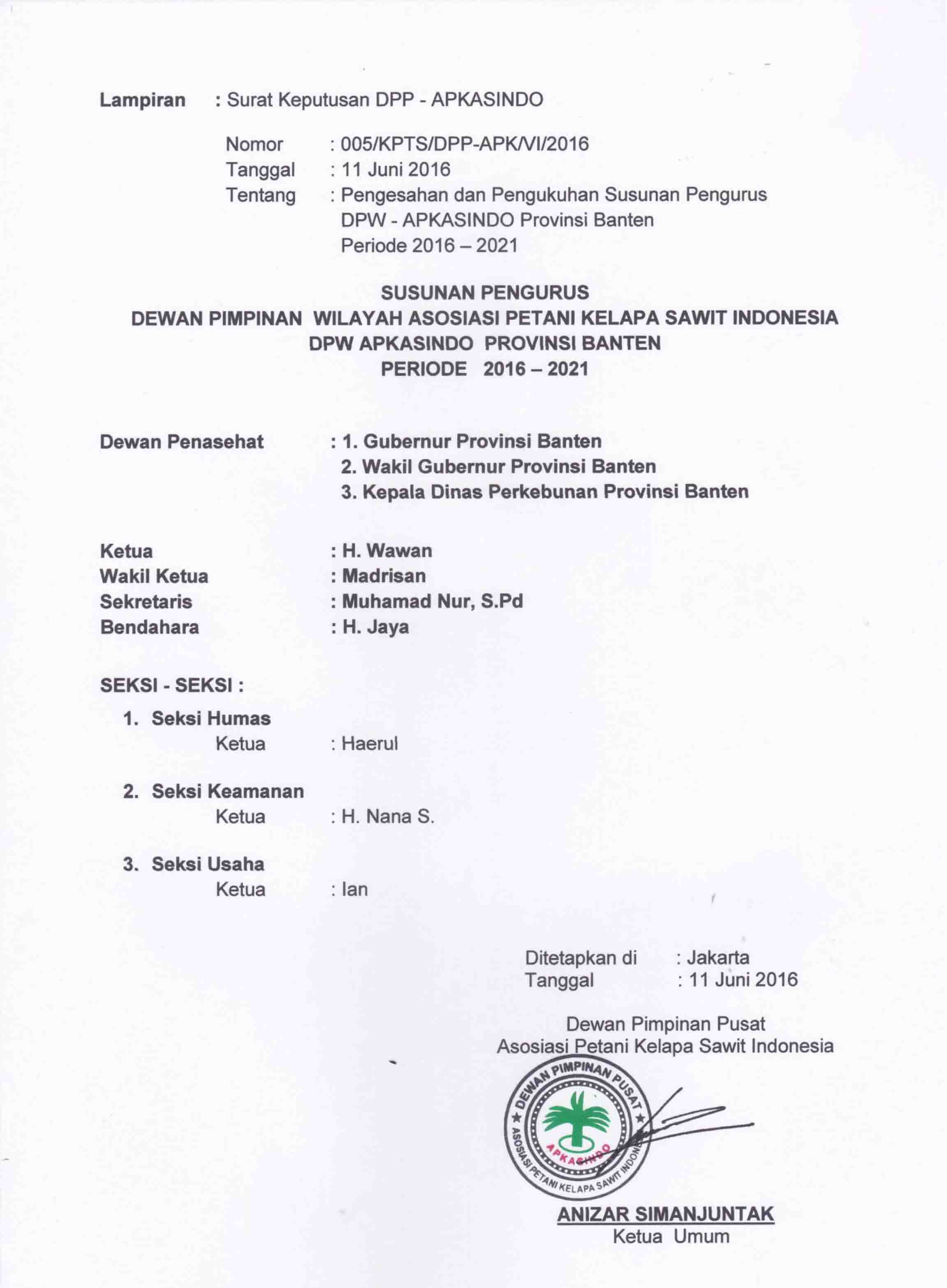 Bank Mandiri a/n Asosiasi Petani Kelapa Sawit Indonesia